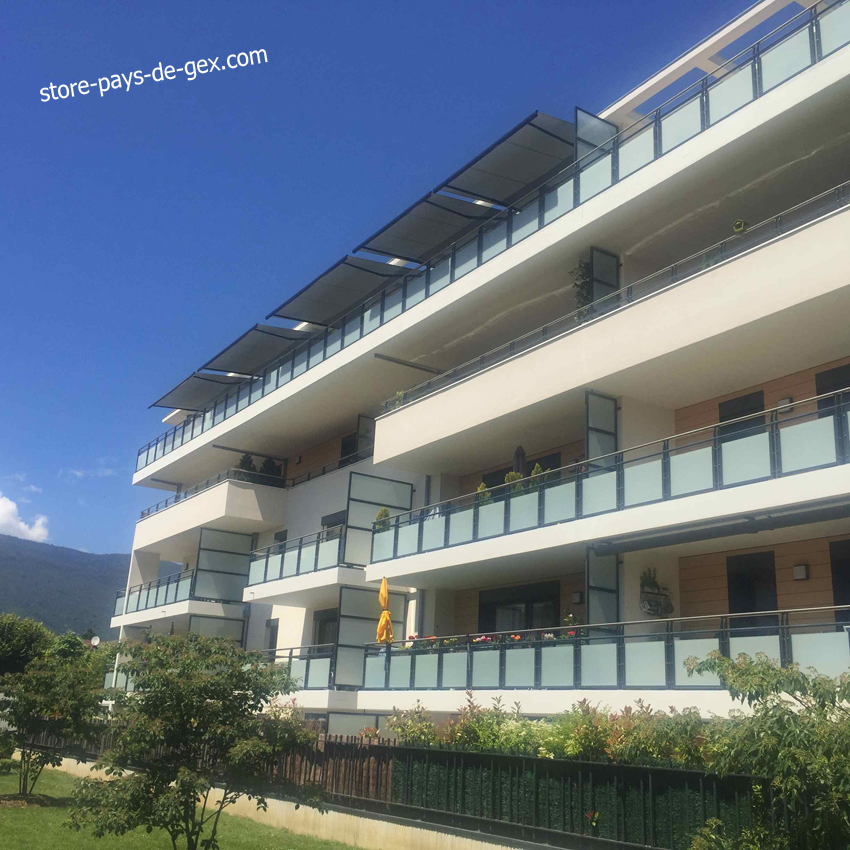 INSTALLATION STORE COFFRE de BALCON STOBAG - 01210 FERNEY VOLTAIRE - Immeuble Carré Voltaire - Pays de Gex :